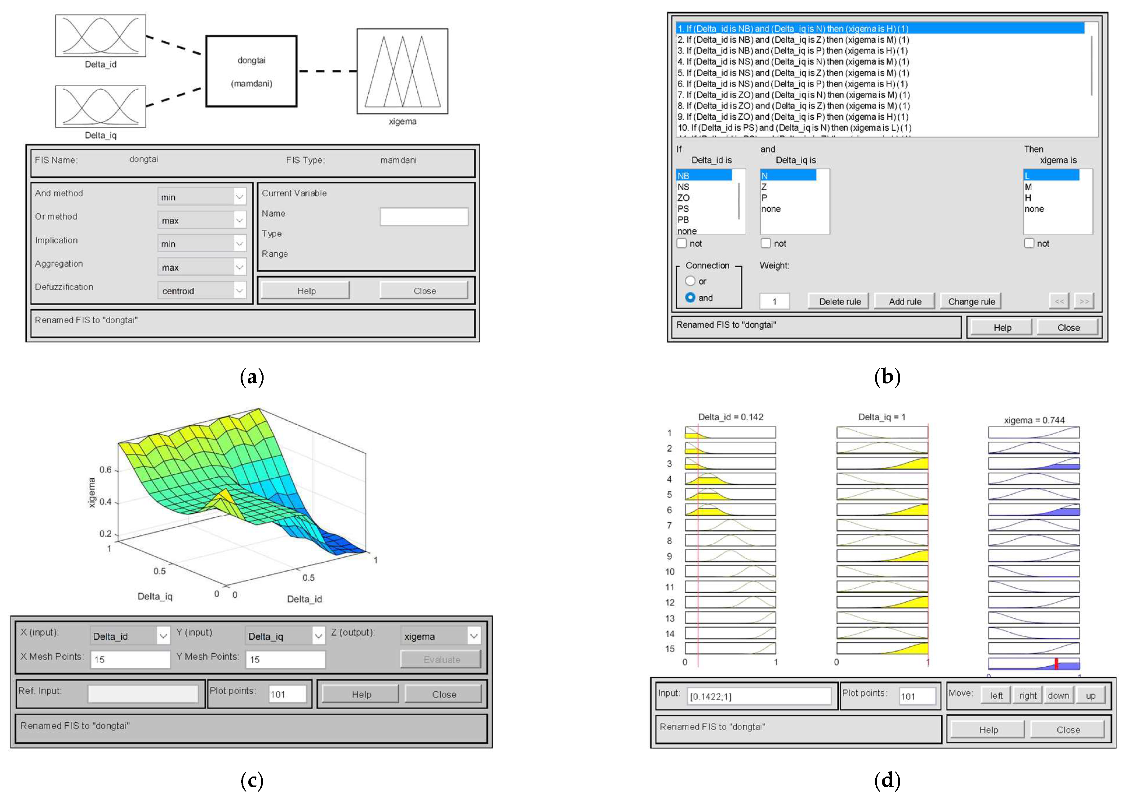 3.3. Adaptive Fuzzy Algorithm-Based Smooth Transition Strategy for IPMSM Speed Regulation Zones
