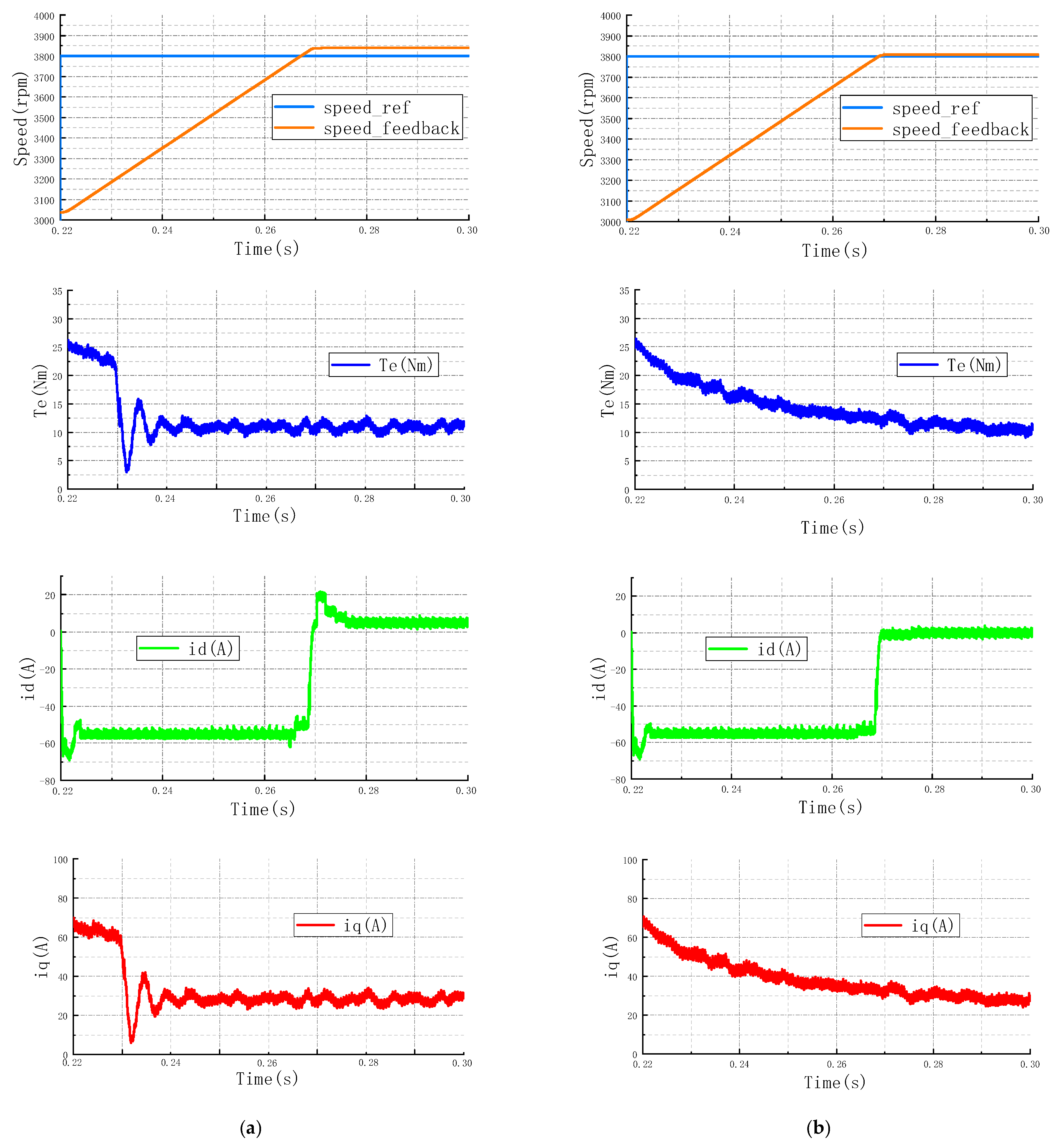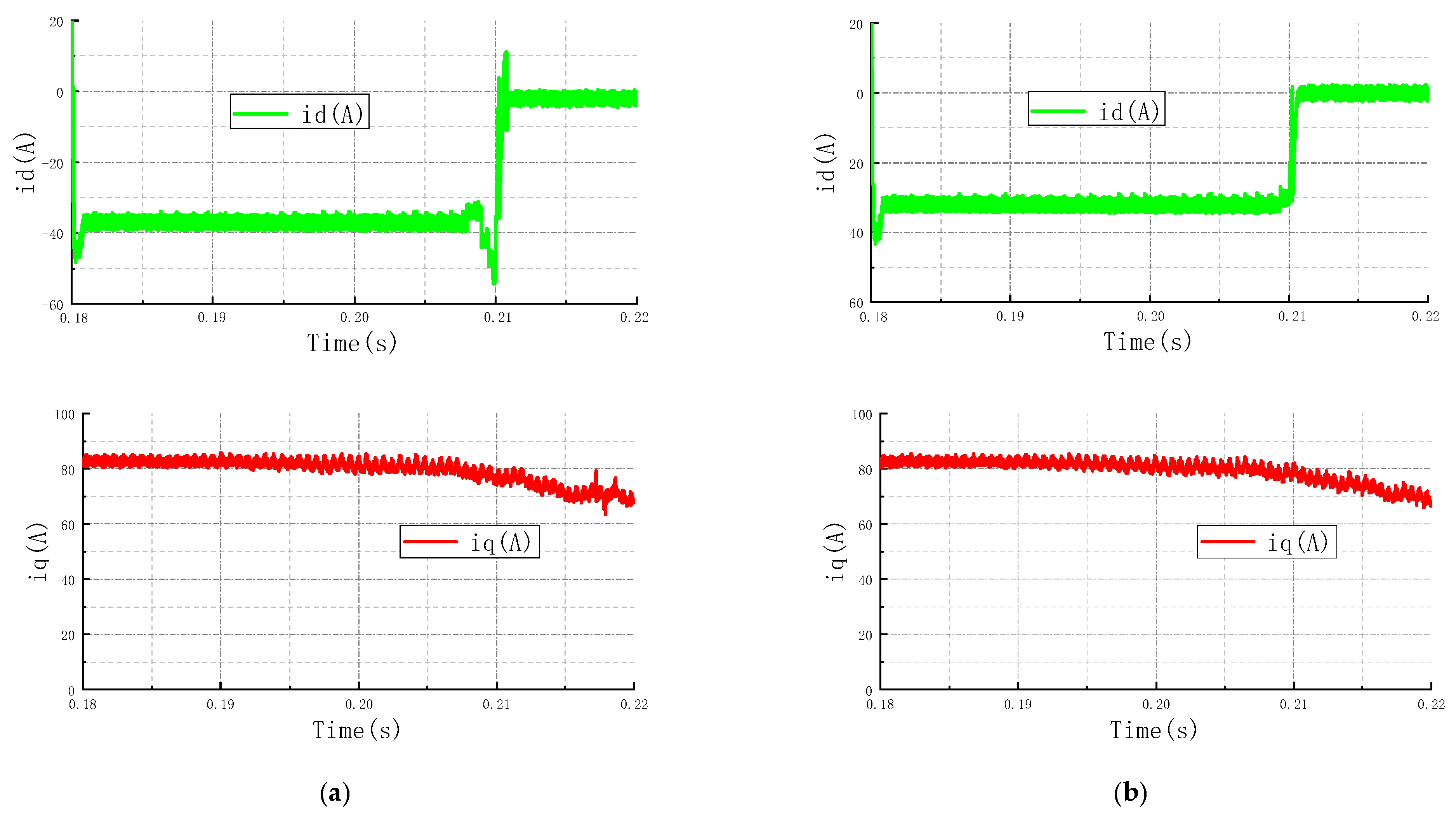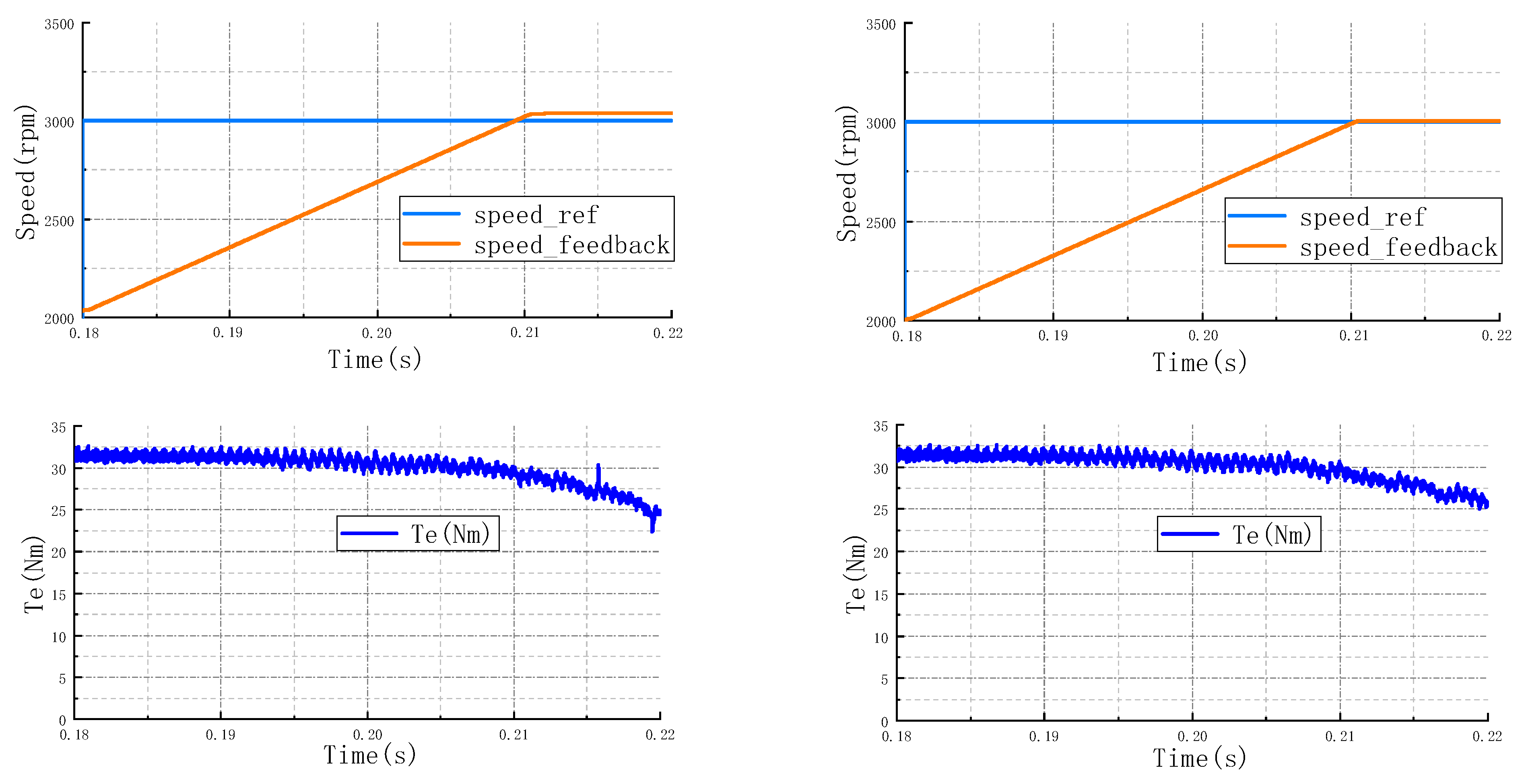 - Wang, F.; Kong, W.; Wang, Z. Dynamic Flux Weakening-Based DPCC for Rapid Torque Rise of SPMSM Drives at Medium-to-High Speeds. IEEE Trans. Ind. Electron. 2025, 72, 11035–11047. [Google Scholar] [CrossRef]