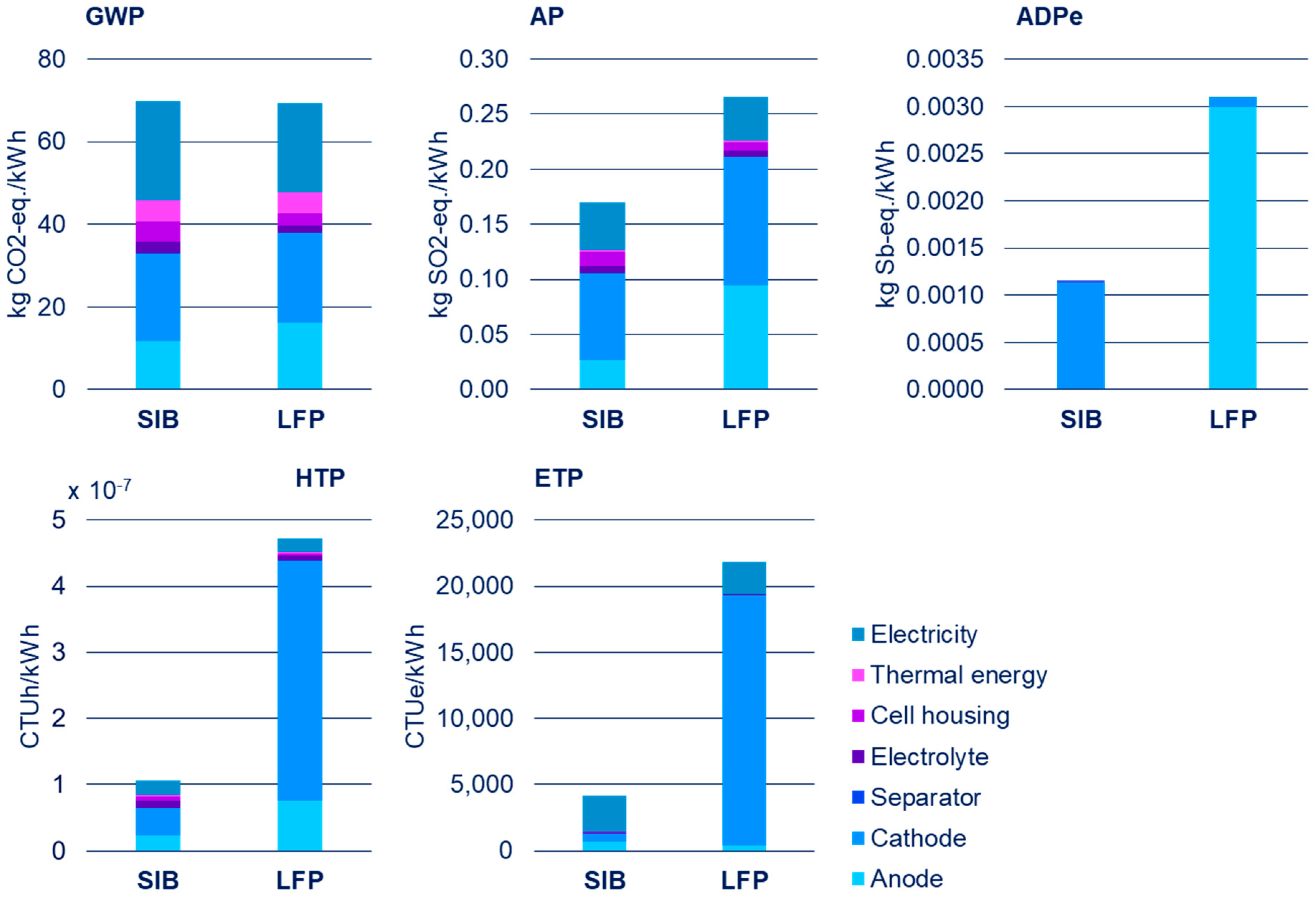 - Peters, J.; Baumann, M.; Binder, J.; Weil, M. On the environmental competitiveness of sodium-ion batteries under a full life cycle perspective—A cell-chemistry specific modelling approach. Sustain. Energy Fuels 2021, 5, 6414. [Google Scholar] [CrossRef]