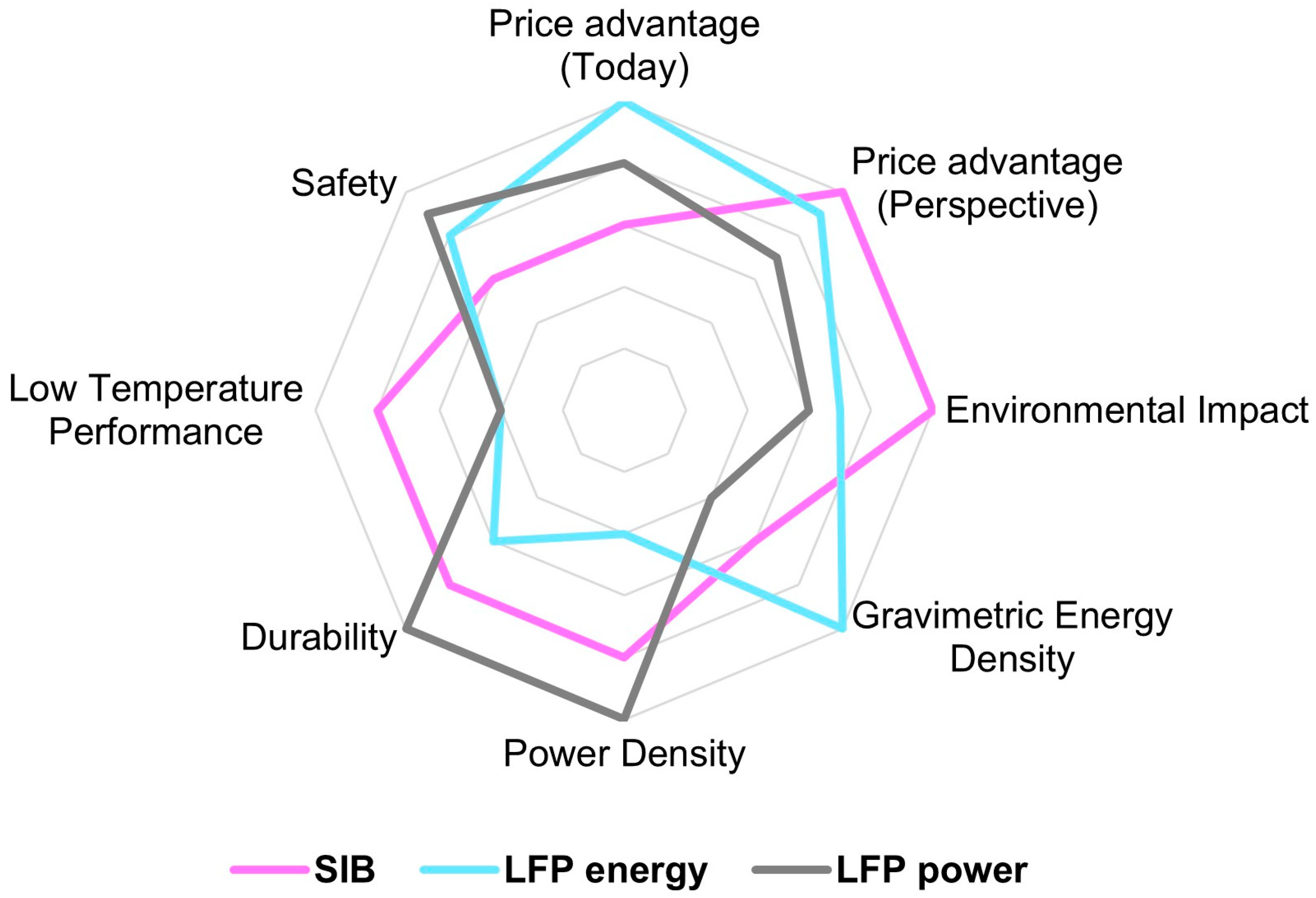 | KPI | Sodium-Ion | Lithium Iron Phosphate—High Energy | Lithium Iron Phosphate—High Power |