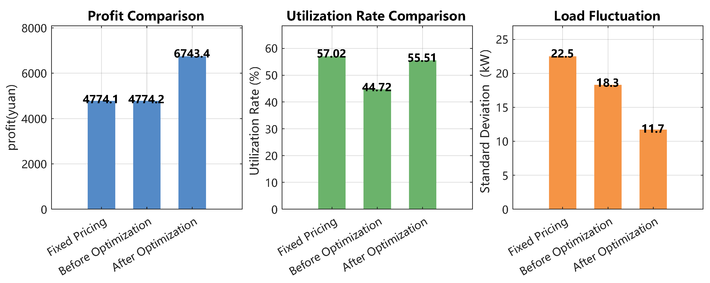 The experimental results demonstrate that, compared with fixed pricing and traditional TOU pricing strategies, the proposed optimization model delivers significant improvements in several key aspects:
