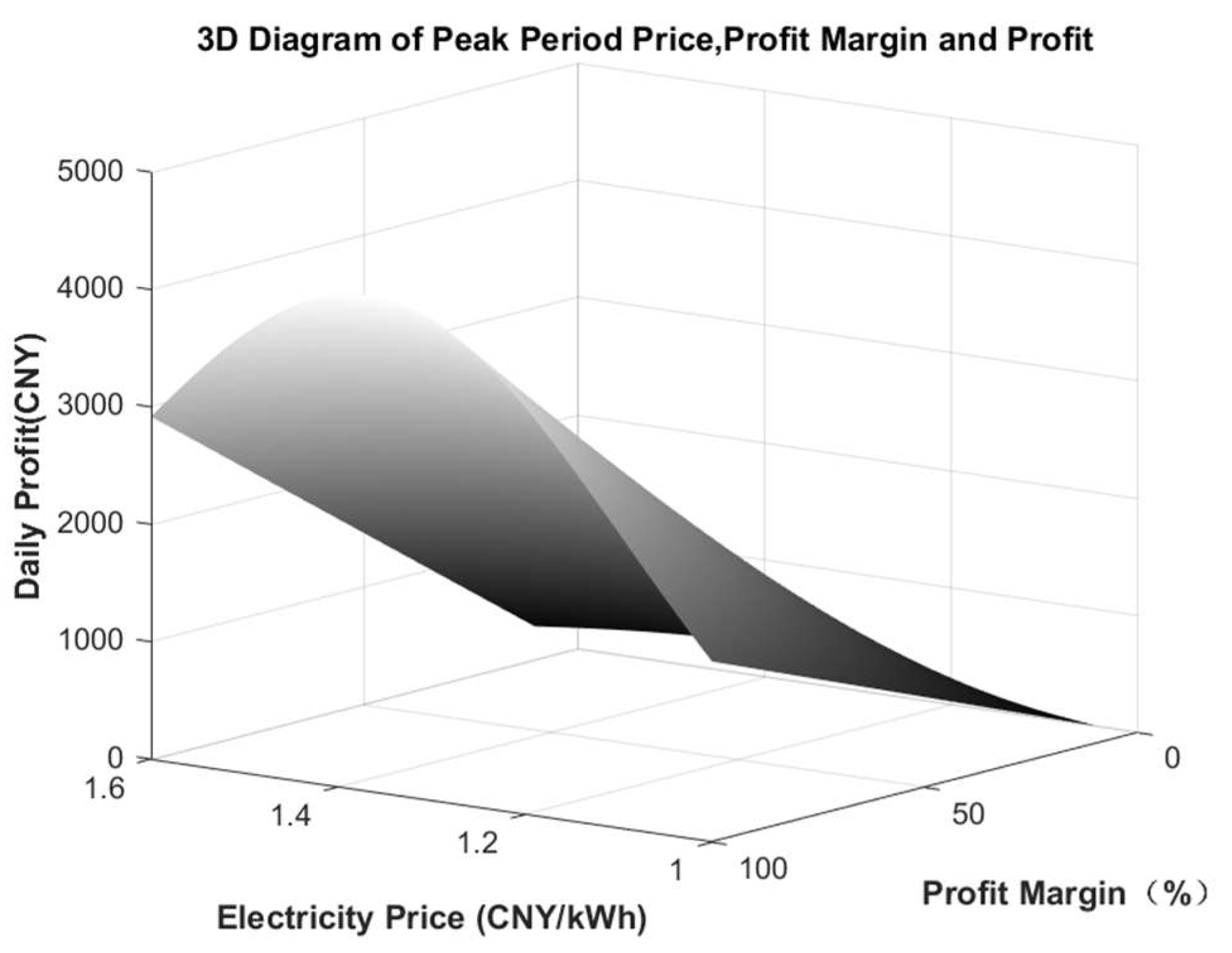 Figure 8. Impact of peak period electricity purchase cost on profit.