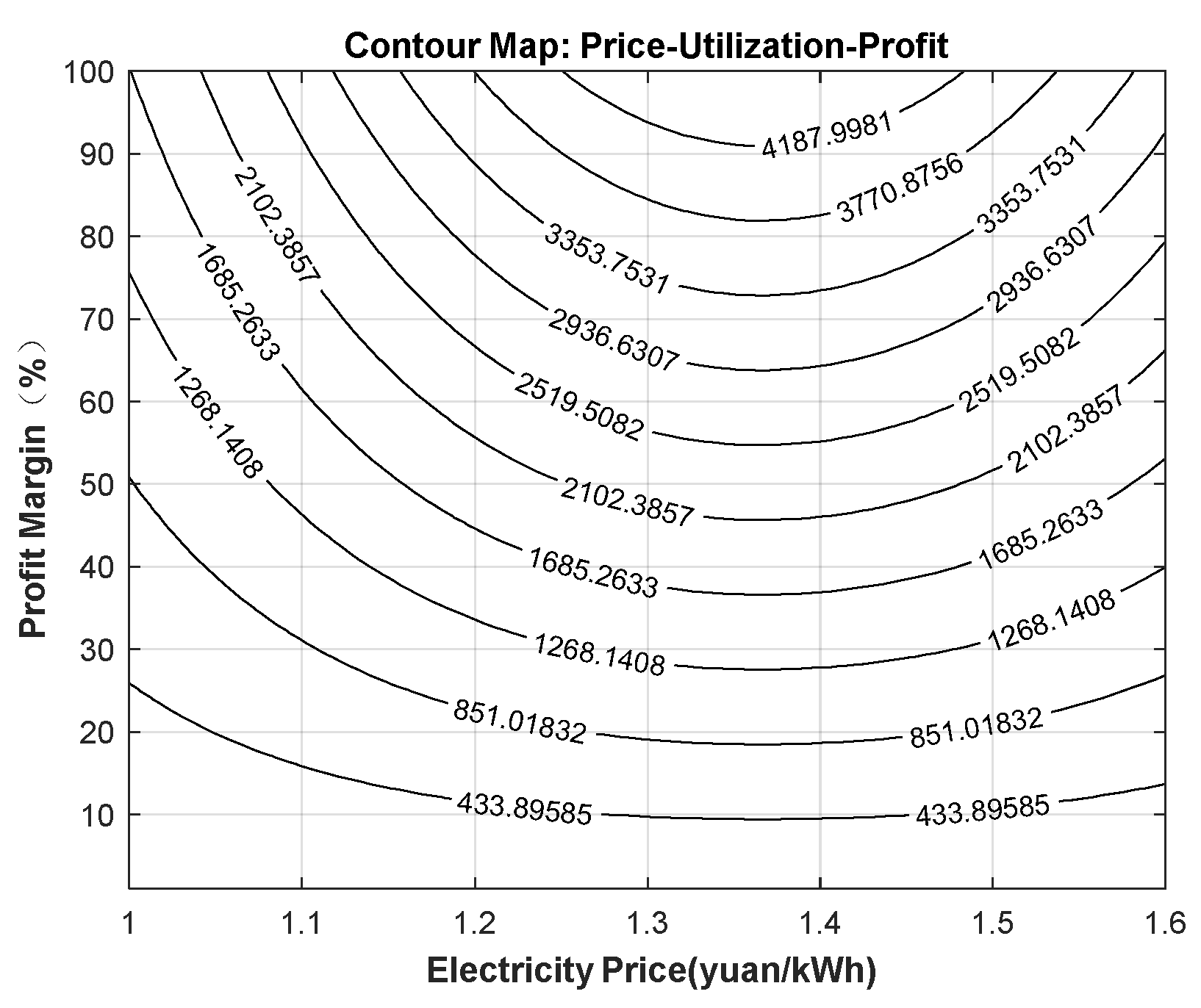 Figure 5. Relationship among peak period price, utilization rate, and profit.