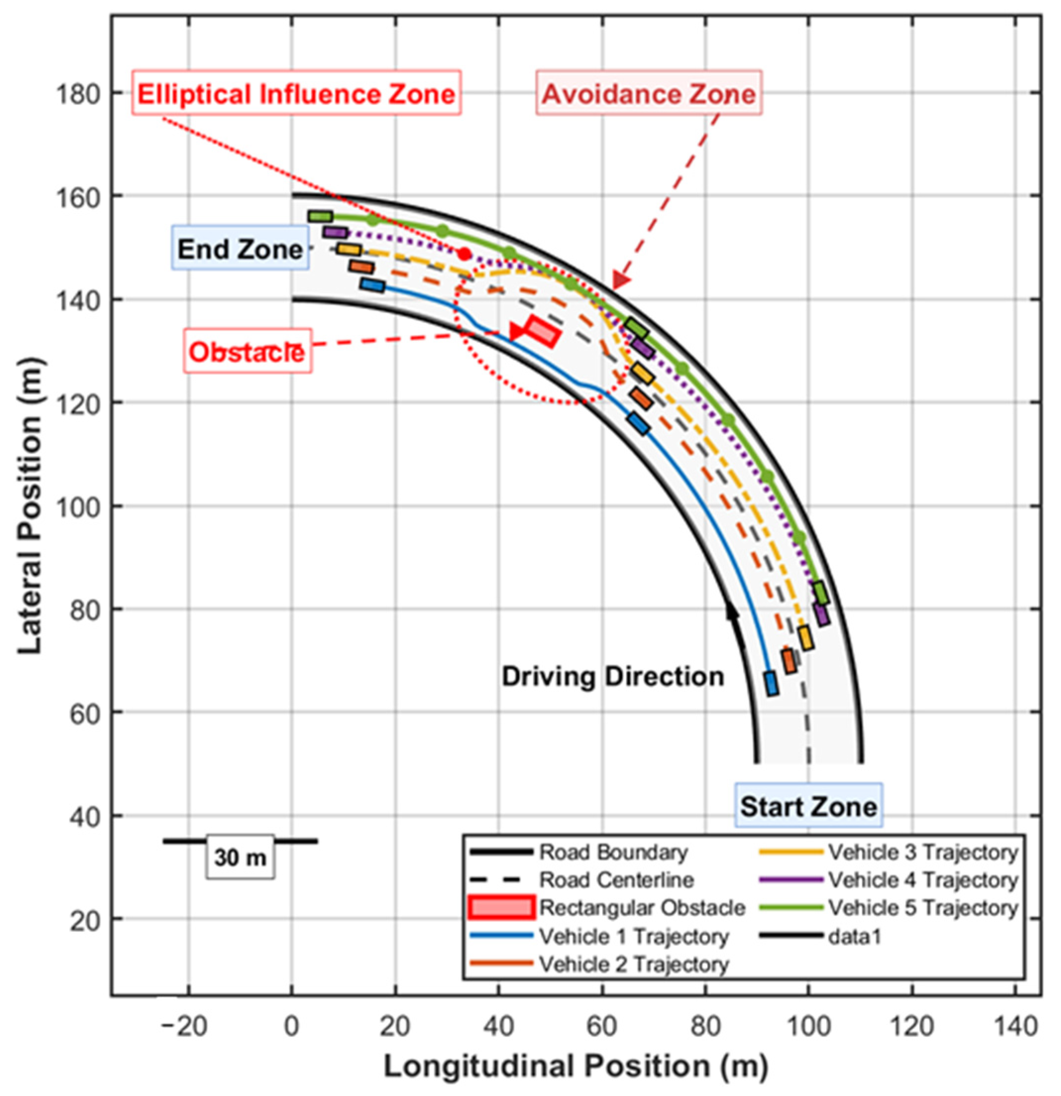 - Li, A.X.; Su, M.; Jiang, H.B.; Chen, Y.X.; Chen, W.T. A Two-Dimensional Lane-Changing Dynamics Model Based on Force. IEEE Trans. Intell. Transp. Syst. 2024, 25, 20203–20214. [Google Scholar] [CrossRef]