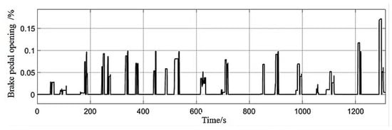 Comparing Figure 11, Figure 12 and Figure 13, the following conclusions can be drawn. When the opening of the accelerator pedal is at its peak, the corresponding vehicle speed will also change synchronously. When the opening of the brake pedal is at its peak, the vehicle speed slowly decreases as well.