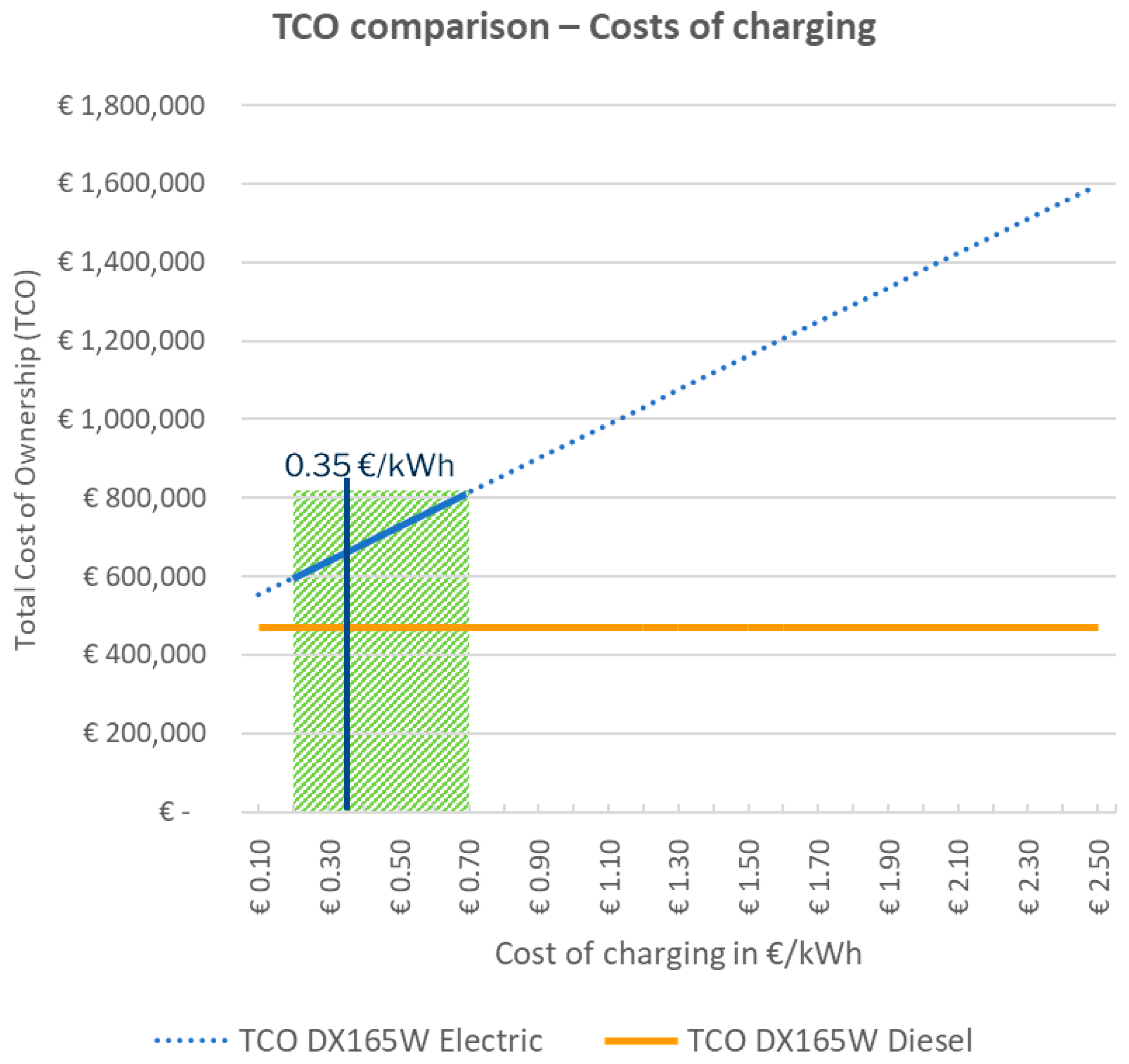 - Upscaling and technological developments will have a positive impact on the TCO of electric machines in the long term. In this, there is the potential to improve efficiency and therefore reduce the need for large battery capacities. This will result in lower overall machine costs.