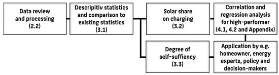 To explore the data, descriptive statistics and visualizations were used. This provides a better understanding of charging behavior and solar utilization patterns. The flowchart in Figure 4 presents an overview on the exploration approach.
