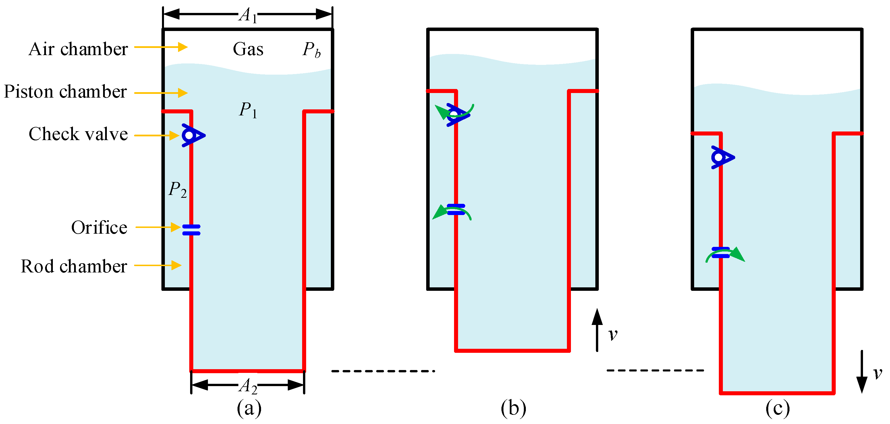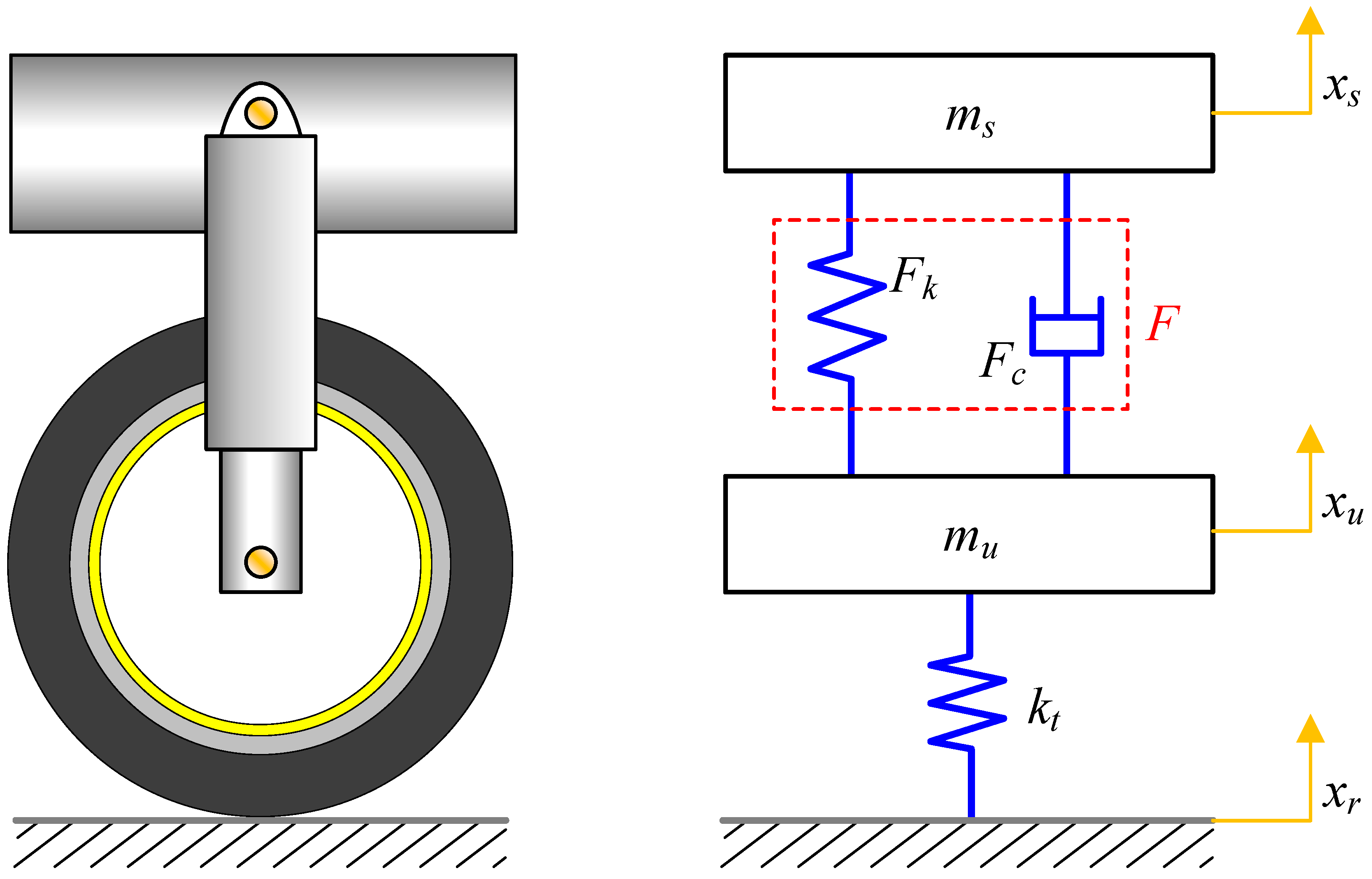 21] developed a mathematical model for hydro-pneumatic suspension that includes a fractional-order differential term, aiming to describe its nonlinear essence more precisely. By utilizing a modified Oustaloup filter algorithm to perform the fractional-order calculations, the model can reflect the system characteristics with higher accuracy. In addressing the limitation of traditional hydro-pneumatic suspension systems whose damping cannot be adjusted in real time, Jiang et al. [