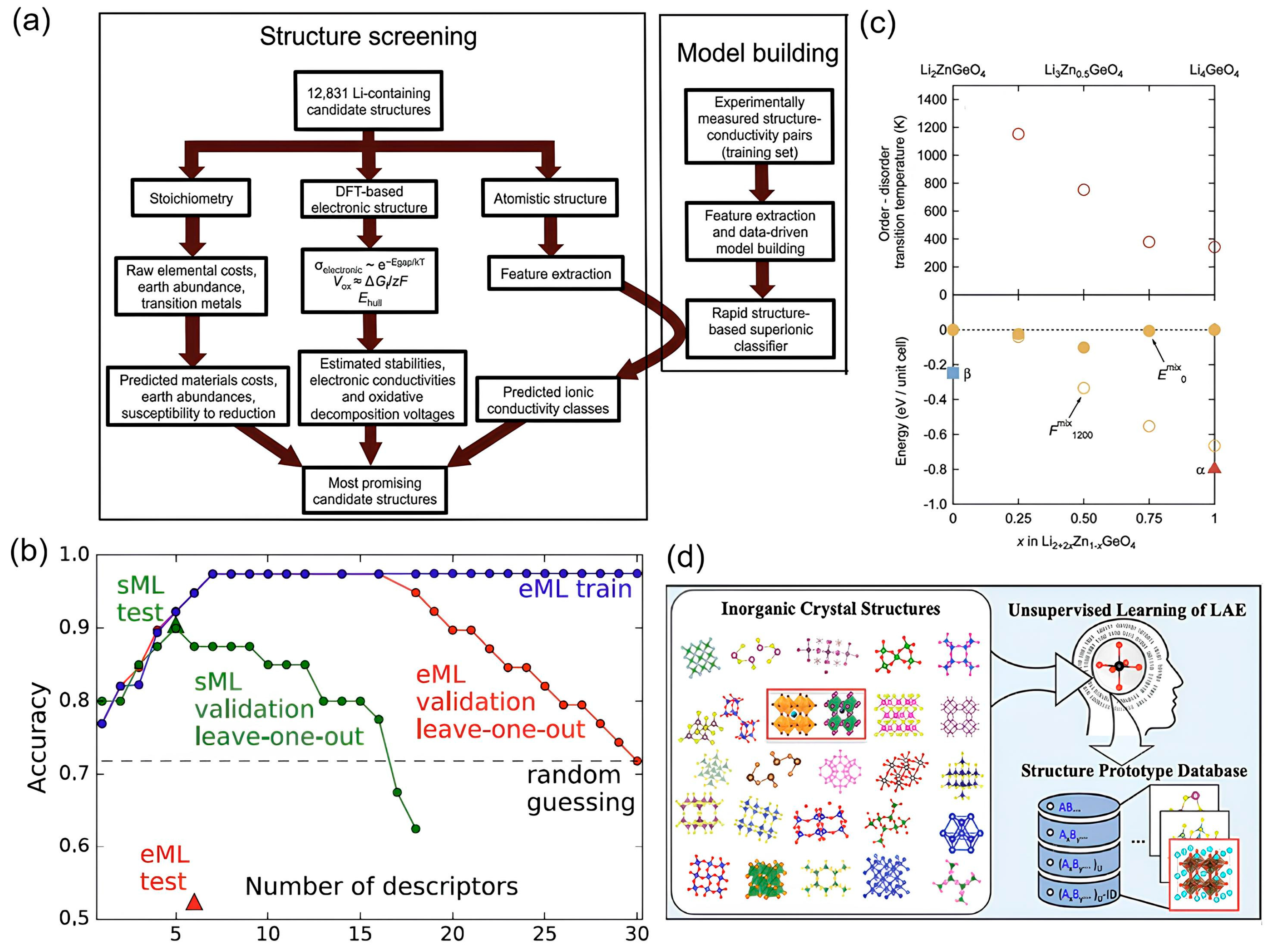 - Sendek, A.D.; Yang, Q.; Cubuk, E.D.; Duerloo, K.-A.N.; Cui, Y.; Reed, E.J. Holistic computational structure screening of more than 12000 candidates for solid lithium-ion conductor materials. Energy Environ. Sci. 2017, 10, 306–320. [Google Scholar] [CrossRef]