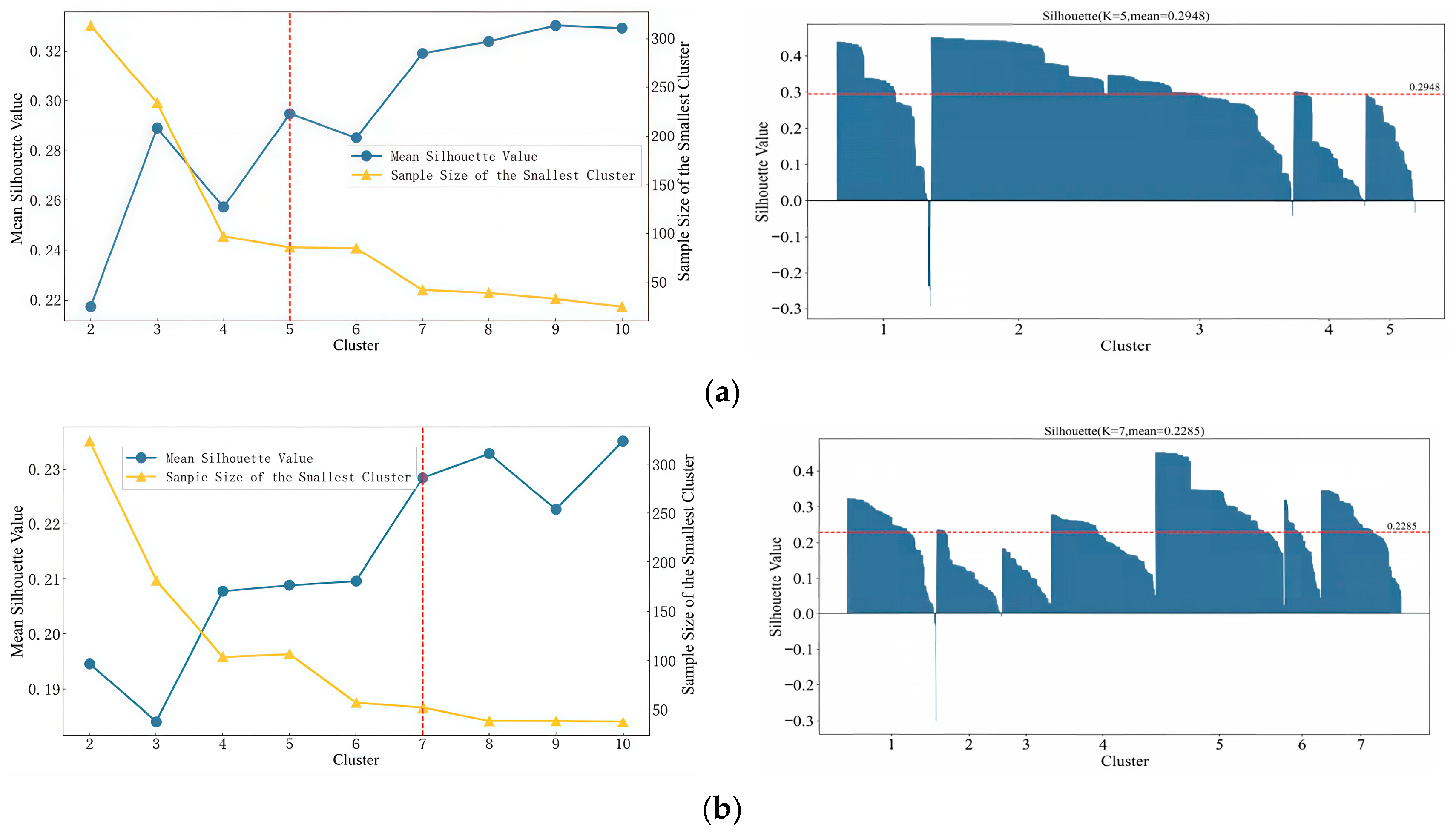 - Rousseeuw, P.J. Silhouettes: A graphical aid to the interpretation and validation of cluster analysis. J. Comput. Appl. Math. 1987, 20, 53–65. [Google Scholar] [CrossRef]
