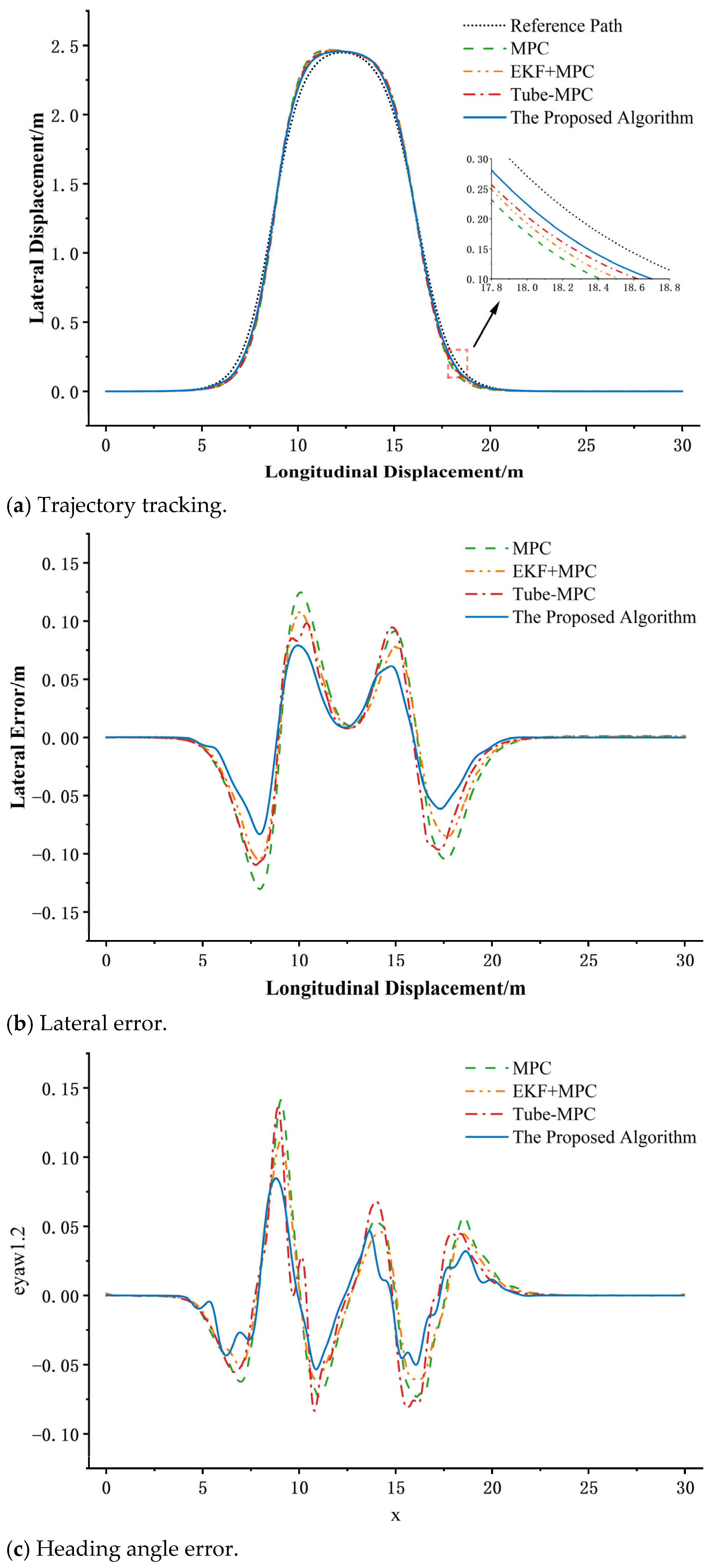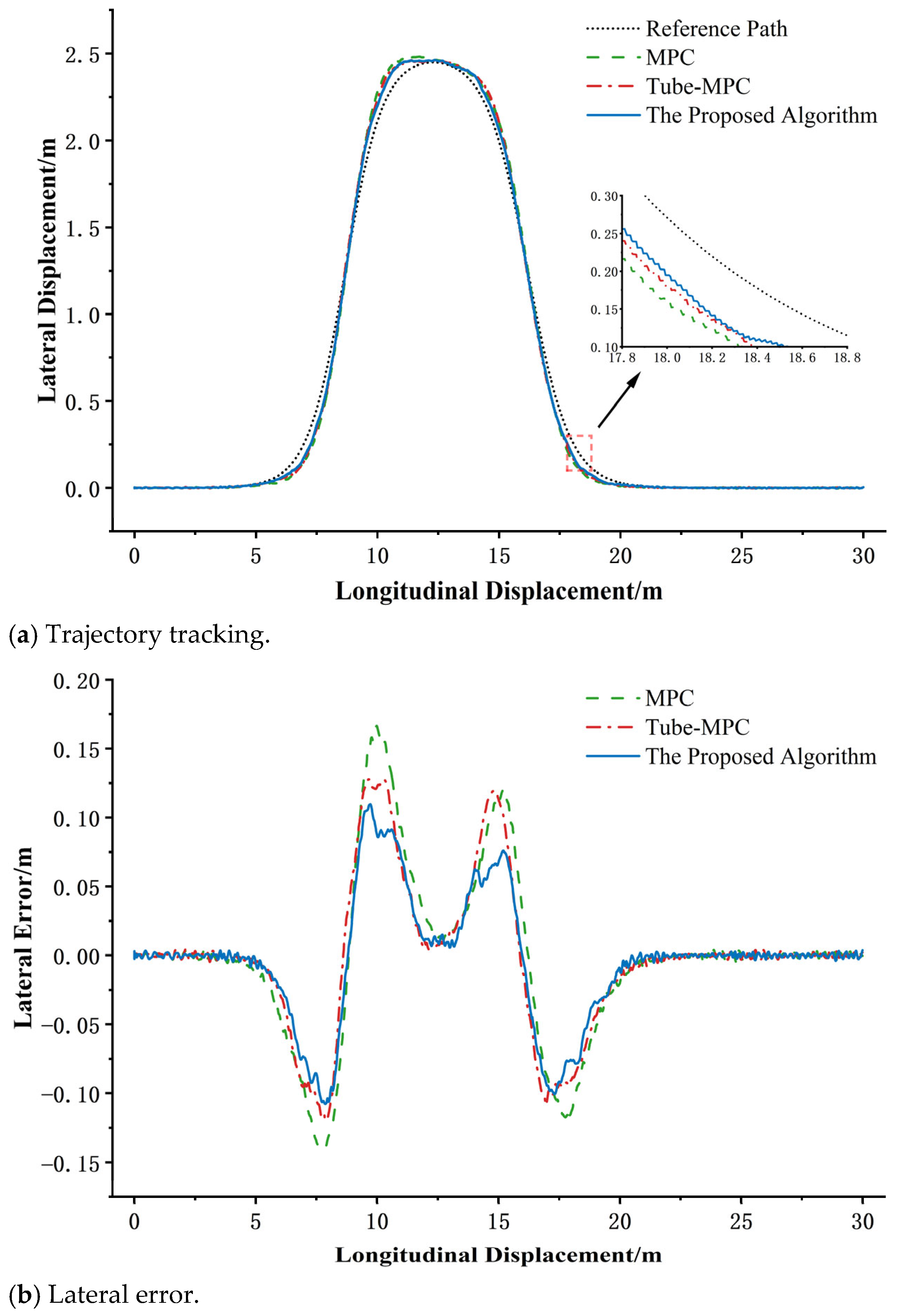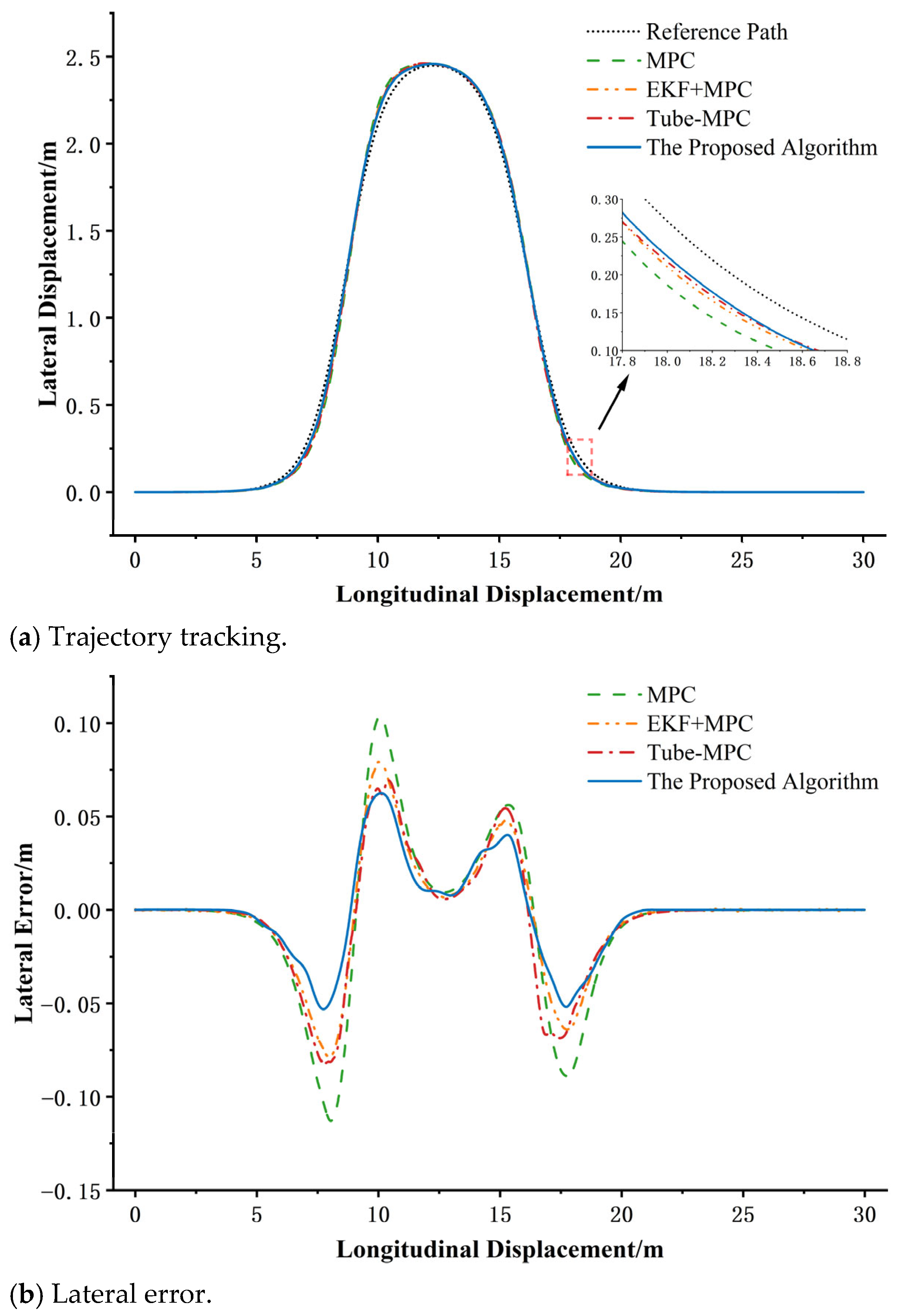- Zhao, S.; Wang, S.; Leng, Y. Multi-Objective Explicit Model Predictive Control for Trajectory Tracking of Intelligent Vehicles. Automot. Eng. 2024, 46, 784–794. [Google Scholar]