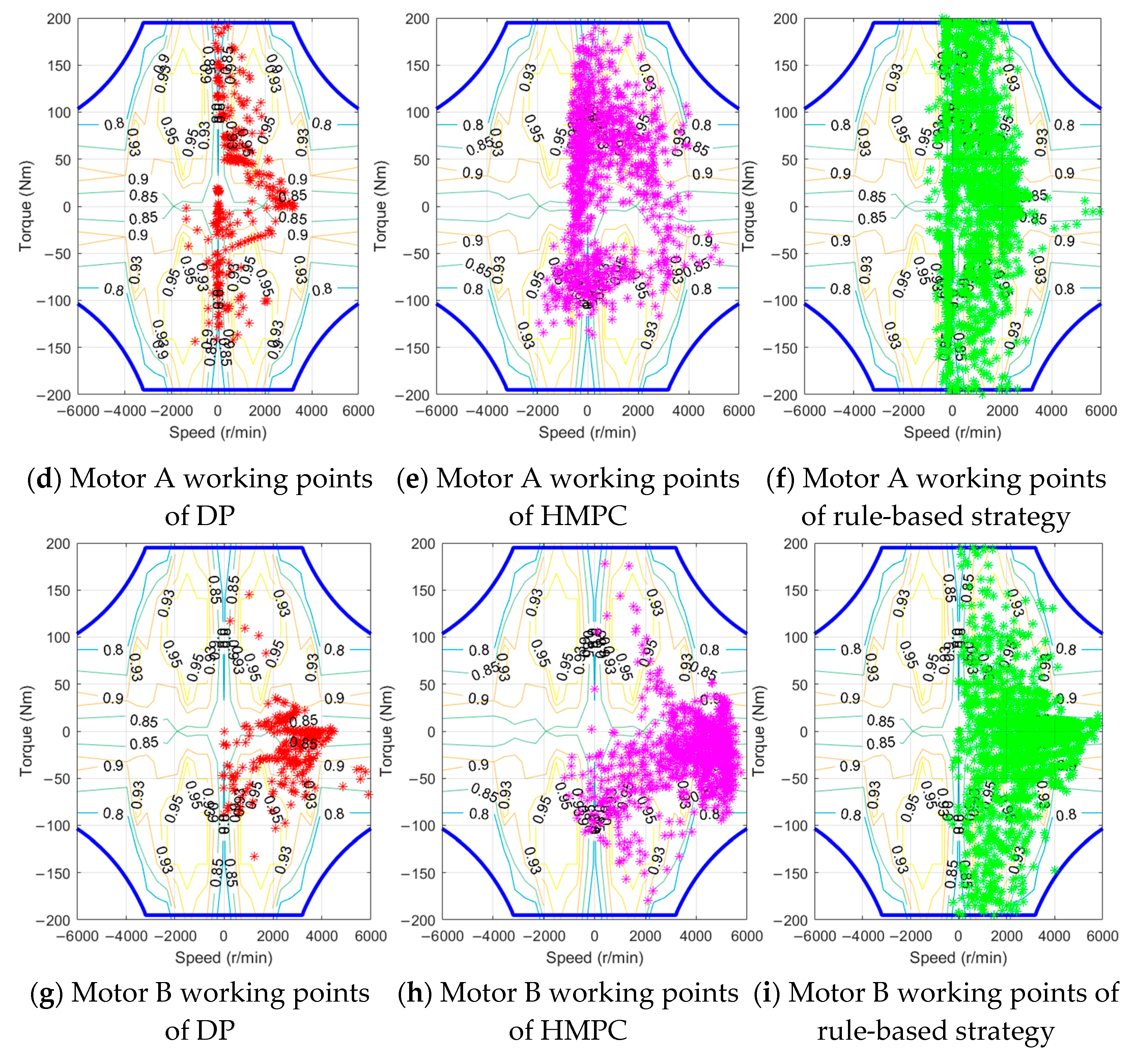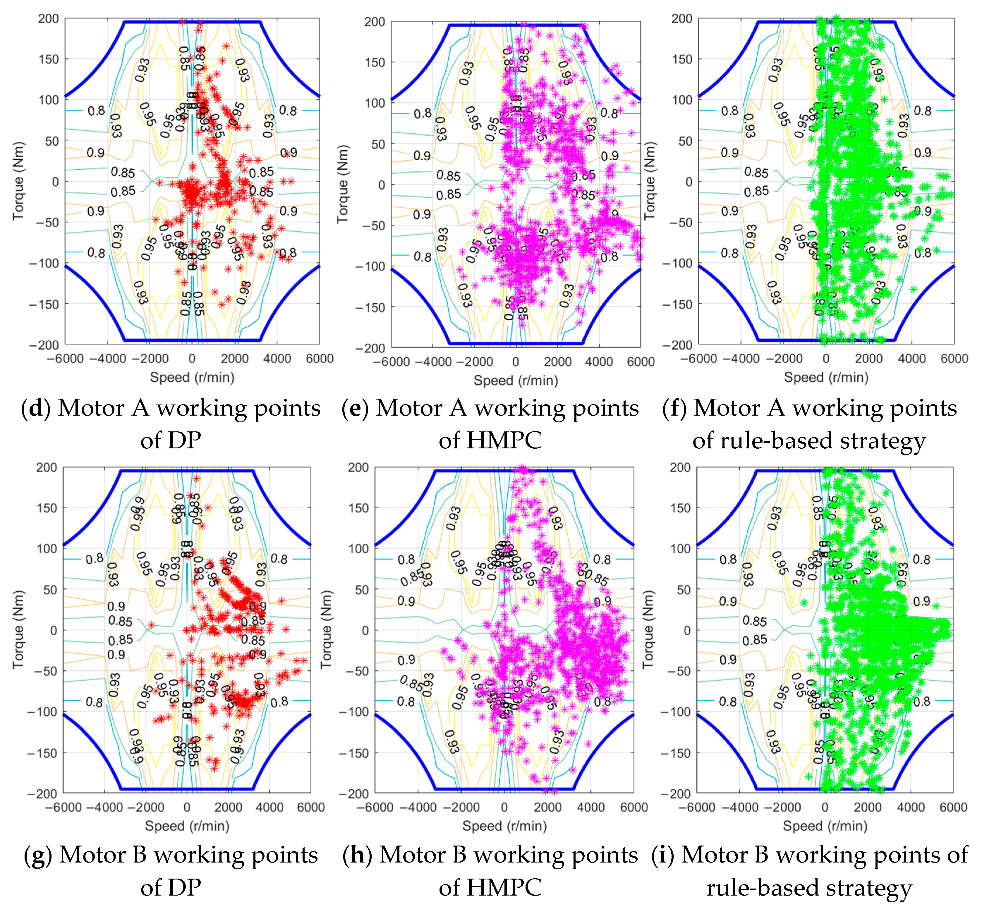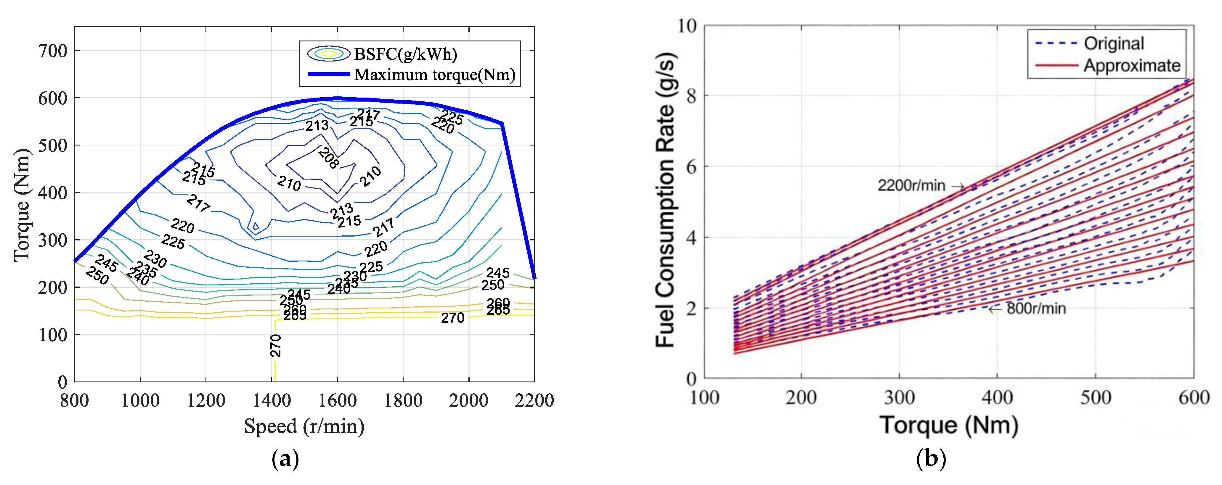 - The fuel consumption rate of the engine and the efficiency characteristics of the motor are obtained from steady-state experimental MAPs.