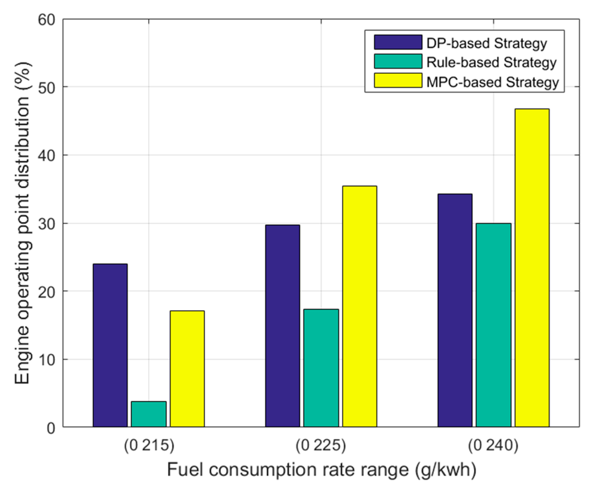 - Highway conditions: Enforce tighter constraints on the high-efficiency region of the engine and SOC maintenance to enhance fuel economy.