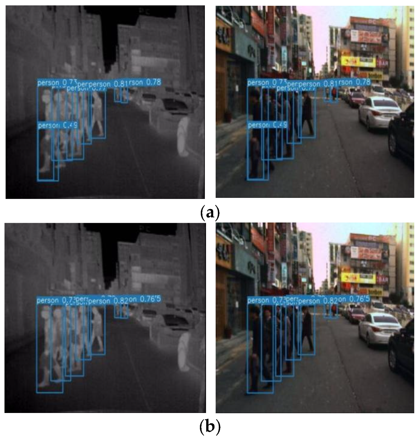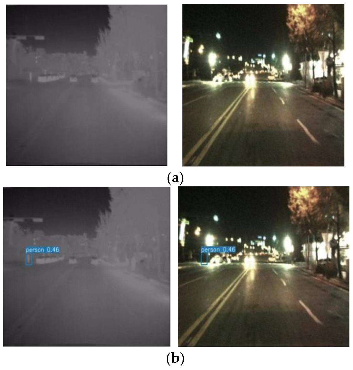 - Hwang, S.; Park, J.; Kim, N.; Choi, Y.; So Kweon, I. Multispectral pedestrian detection: Benchmark dataset and baseline. In Proceedings of the IEEE Conference on Computer Vision and Pattern Recognition, Boston, MA, USA, 7–12 June 2015; pp. 1037–1045. [Google Scholar]
