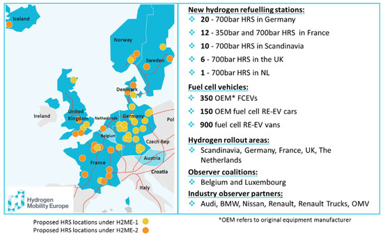- H2ME-2 (2016–2022), which aims to deploy 1200 FCEVs and FC REEVs and 20 HRS (hydrogen refuelling stations).