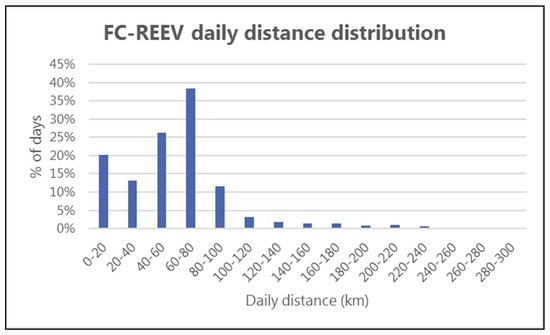 H2ME fuel cell range-extended electric vehicles (FC-REEV) daily distance driven distribution.