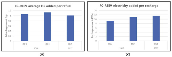 H2ME FC-REEV (a) hydrogen refuelling and (b) electrical recharging amounts over time.
