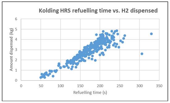 The Kolding station is a state-of-art, SAE J2601 compliant facility [12] that incorporates precooling to −40 °C and was built according to ISO/TS20100:2008 Gaseous hydrogen—Fuelling Stations (since revised to ISO19880:2016). Figure 11 demonstrates that the Kolding HRS refuels vehicles at a rate of ca. 1 kg H2 per minute, as specified by the protocol.