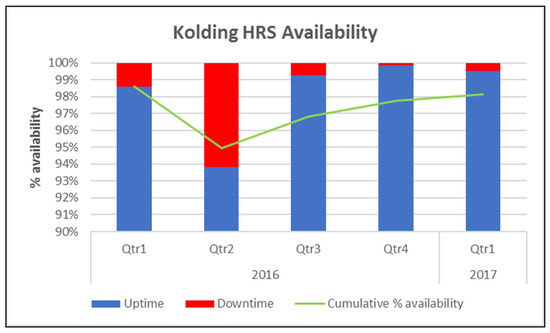 A crucial factor in the wider public acceptance of hydrogen vehicles is that HRS should be reliable and available when needed. To aid user’s confidence in its stations, NEL Hydrogen Fueling provides mobile telephone text updates on whether its stations are working, and the Kolding station is equipped with state-of-art diagnostic and reporting tools that allow NEL to report and repair any station issues that arise. Figure 13 summarises the Kolding HRS’s availability over the first year of its deployment.