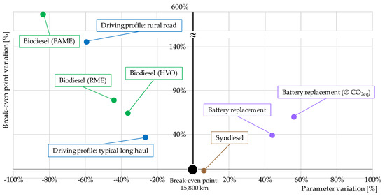 - At what mileage are the larger environmental burdens due to the production of the hybrid drivetrain compensated compared to the conventional one and which parameters affect the break-even point?