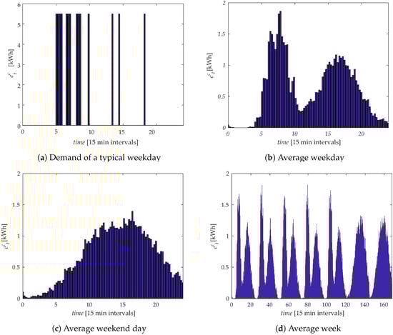 Calculations are conducted every 15 min within a workday, a weekend day and within a whole week for a sample size of . This means that the model runs N times for every tested day storing data in 15-min intervals. The performance of the model is high, e.g., the authors used an PC with an Intel i5 and 16 GB RAM and accomplished on model run () within s and () in 1359 s.