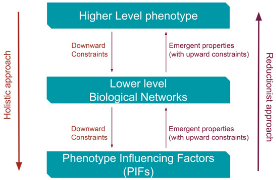 Constraints and emergent properties: two concepts of systems biology (SB) explaining the interrelationship and interaction between higher and lower levels of the biological ladder. PIFs = Phenotype Influencing Factors (comorbidities, diseases’ compensatory–regulatory mechanisms (DCRM), environmental factors and deoxyribonucleic acid (DNA) sequences).