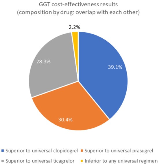 The CLASSICS trial (2000) compared “clopidogrel plus aspirin” with “ticlopidine plus aspirin” in patients treated with stents. The primary endpoint rates were 4.6% in the clopidogrel group and 9.1% in the ticlopidine group. Adverse effects were less in the clopidogrel group []. This trend did not change significantly in the subsequent studies. However, the use of clopidogrel has been associated with drug resistance. This resistance is not due to individual differences in the action of the P2Y12 receptor but to variations in the production of the active metabolite. Prasugrel, a third-generation thienopyridine derivative, has a single-step metabolic pathway and less effect on the CYP2C19 genotype. In the GRAPE registry (2016), the prasugrel group had fewer MACE and more overall bleeding events (interpreted as minor bleeding) at 1 year than the clopidogrel group among patients undergoing PCI for acute coronary syndromes []. On the other hand, prasugrel is generally associated with an increased cost burden (drug price) in terms of medical economics. Therefore, in post-PCI antiplatelet therapy, it is desirable to improve the cost-effectiveness of the entire population by using GGT. The results of the present study show that post-PCI antiplatelet therapy combined with GGT improved healthcare economics.