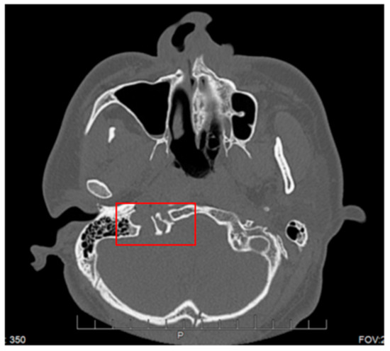 CT maxillofacial. Red box indicates junction of Jugular foramen and Hypoglossal Canal.