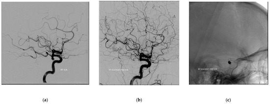 - Daou, B.; Valle-Giler, E.P.; Chalouhi, N.; Starke, R.M.; Tjoumakaris, S.; Hasan, D.; Rosenwasser, R.H.; Hebert, R.; Jabbour, P. Patency of the posterior communicating artery following treatment with the Pipeline Embolization Device. J. Neurosurg. 2017, 126, 564–569. [Google Scholar] [CrossRef] [PubMed]
