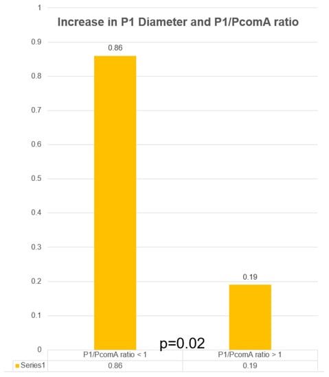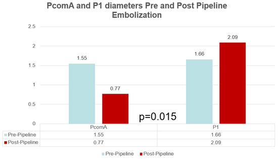 Previous studies showed that the PcomA diameter decrease is likely as a consequence of PcomA origin coverage of the PED [5,7]. Another study also showed that the ratio between the PcomA and the P1 segment modulates the hemodynamic and anatomic response of the PcomA upon flow diversion coveratge. The novelty of our study is that concomitant with this decrease in PcomA diameter, an increase in the P1 diameter was observed, attesting to the relative hemodynamic balance between the two vessels/vascular segments.