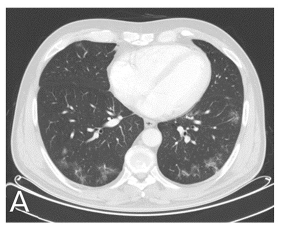 In January 2021, a 24-year-old male patient with history of Kleine-Levin disease was admitted to the emergency department as a SARS-Cov-2 positive with high fever, cough, dyspnea, anosmia, dysgeusia and fatigue. Symptoms worsened 6 days after the onset of infection, and lung MSCT showed areas of enhanced attenuation by the type of ground glass and patchy consolidations are seen on both sides-bilateral pneumonia (A).