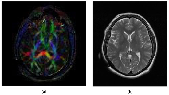 The procedure was explained to the patient in detail, including the potential complications, such as neurodeficit, cerebrospinal fluid fistula, infection, and death. After informed consent was signed, the patient was offered a right-sided centro-median thalamotomy. A preoperative post-contrast T1 MRI sequence using 1 mm cuts through the whole brain was carried out along with a T2 MRI sequence in 1 mm cuts through the basal ganglia. Using local anesthesia, a ZD (Zamorano Dujovny, F. L. Fischer, Freiburg, Germany) frame was placed, after which, a post-contrast brain computed tomography (CT) with 1 mm cuts was carried out using the whole brain. Standard planning by means of an imaging fusion procedure was carried out (Medtronic framelink, Medtronic, Ireland) utilizing coordinates at 4–6 mm lateral to the lateral wall of the III ventricle, 8 mm post-intercommissural point, and 2–3 mm above the intercommissural line. The patient was placed under local anesthesia and sedation, and scrubbing and draping were continued in the usual fashion. A standard incision was made to reopen the prior incision, and a bilateral burr hole was made in a regular fashion to remove the prior implanted electrode and to continue the insertion of the new electrode in one side. Dural opening and coagulation were subsequently performed. A 1-mm-thick macro-electrode (Cosman, Burlington, MA, USA) with a 3 mm uninsulated tip was deepened 10 mm prior to the selected target. A macro-stimulation procedure was carried out to select the best anatomical target. When the electrode was in place at 2 mm from the target, the patient referred to touching and moving of the left arm without such maneuvers being carried out. Moreover, the patient experienced a pleasurable sensation and pain alleviation. At the target, the patient continued to have a good response to spontaneous pain, with real time and real sensation identification referred to as touching of the left arm. A coagulation procedure was subsequently performed at 70 °C for 60 s. A simple post-procedure CT was performed along with a postoperative MRI identifying the lesion location. A continuing follow-up took place for one year with adequate pain reduction from a value of 9–10 preoperative to a value of 2 postoperative on the visual analogue scale (VAS) for pain. A diffusion tensor image (DTI) shows tracts surrounding the left centro-median lesion in Figure 2a, and a postoperative T2 MRI sequence shows a rounded lesion at the centro-median nucleus 6 months after the procedure in Figure 2b.