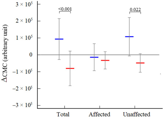 3.5. Response of the CMC for Each Hemisphere following Rehabilitation