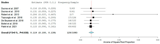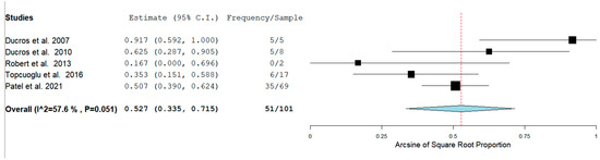 Considering just the postpartum females, Ducros et al. found no significant higher incidence of H-RCVS (19% vs. 9%) [12]. However, Patel et al. and Topcuoglu et al. found a similar incidence of H-RCVS in the postpartum period [14,17]. In our pooled analysis, we found a rate of 9.58% of H-RCVS in the PP sample.