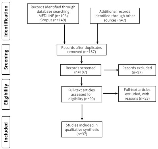 Overall, 262 records were retrieved from the database search. Duplicates and irrelevant studies were excluded; hence, a total of 90 articles were selected. After screening the full text of the articles, 37 studies were eligible for inclusion (Figure 1).