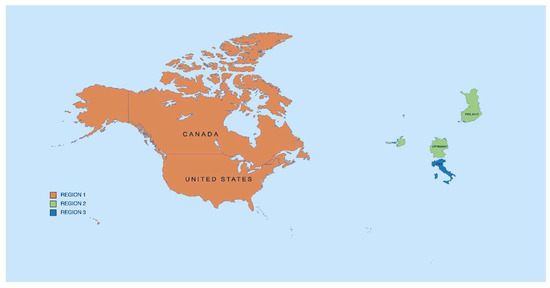 Upon selection of the articles, we grouped them into three categories based on their region: Region 1: USA and Canada, Region 2: Germany, Ireland, and Finland, and Region 3: Italy, as described in Figure 3.