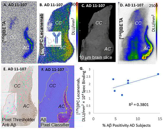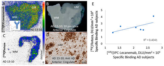 Liang, C.; Paclibar, C.G.; Gonzaga, N.L.; Sison, S.A.; Bath, H.S.; Biju, A.P.; Mukherjee, J. [125I]IPC-Lecanemab: Synthesis and Evaluation of Aβ-Plaque-Binding Antibody and Comparison with Small-Molecule [18F]Flotaza and [125I]IBETA in Postmortem Human Alzheimer’s Disease. Neurol. Int. 2024, 16, 419-431. https://doi.org/10.3390/neurolint16020031