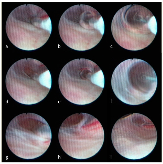 In this retrospective study, the medical data of 78 patients who underwent surgery for symptomatic TCs between 2018 and 2021 were analyzed. All patients were recruited through the Vigdis Thompson Foundation (https://www.vigdis-thompson-foundation.org/en/), a non-profit organization dedicated to research into Tarlov cysts and rare leptomeningopathies. In our clinical routine, TCs were removed applying microsurgical techniques. As demonstrated in Figure 1, in 48 of the 78 patients, an additional thecaloscopy was performed to re-open the arachnoid nerve root perforations and to fenestrate the ventral arachnoid layers [18]. In the other 30 patients, a thecaloscopy was not feasible due to anatomical conditions (e.g., tightened space due to spinal stenosis) or previous surgical procedures (e.g., lumbar spondylodesis).