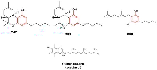 - Dawidowicz, A.L.; Olszowy-Tomczyk, M.; Typek, R. CBG, CBD, Δ9-THC, CBN, CBGA, CBDA and Δ9-THCA as Antioxidant Agents and Their Intervention Abilities in Antioxidant Action. Fitoterapia 2021, 152, 104915. [Google Scholar] [CrossRef]