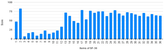 Individual score of SF-36 questionnaire per item.
