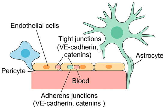 - Sweeney, M.D.; Montagne, A.; Zhao, Z.; Zlokovic, B.V. Blood–brain barrier: From physiology to disease and back. Physiol. Rev. 2022, 102, 1461–1523. [Google Scholar] [CrossRef]
