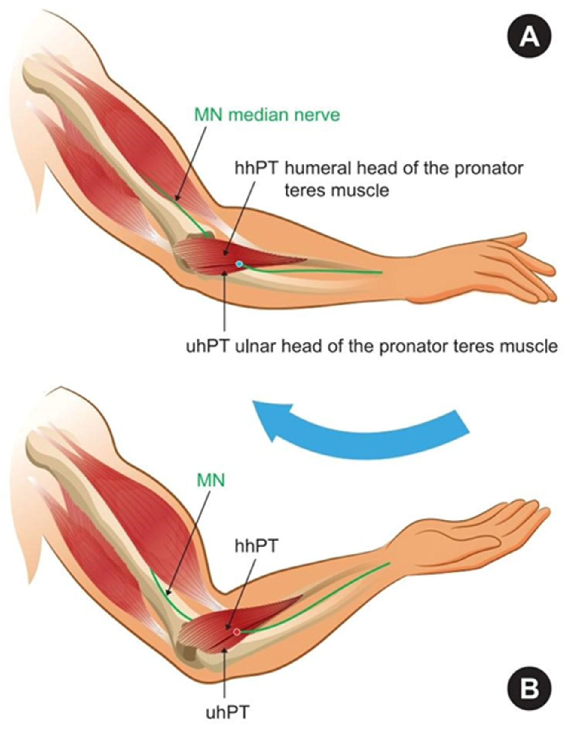 - Dididze, M.; Tafti, D.; Sherman, A.L. Pronator Teres Syndrome. In StatPearls; StatPearls Publishing: Treasure Island, FL, USA, 2025. [Google Scholar] [PubMed]