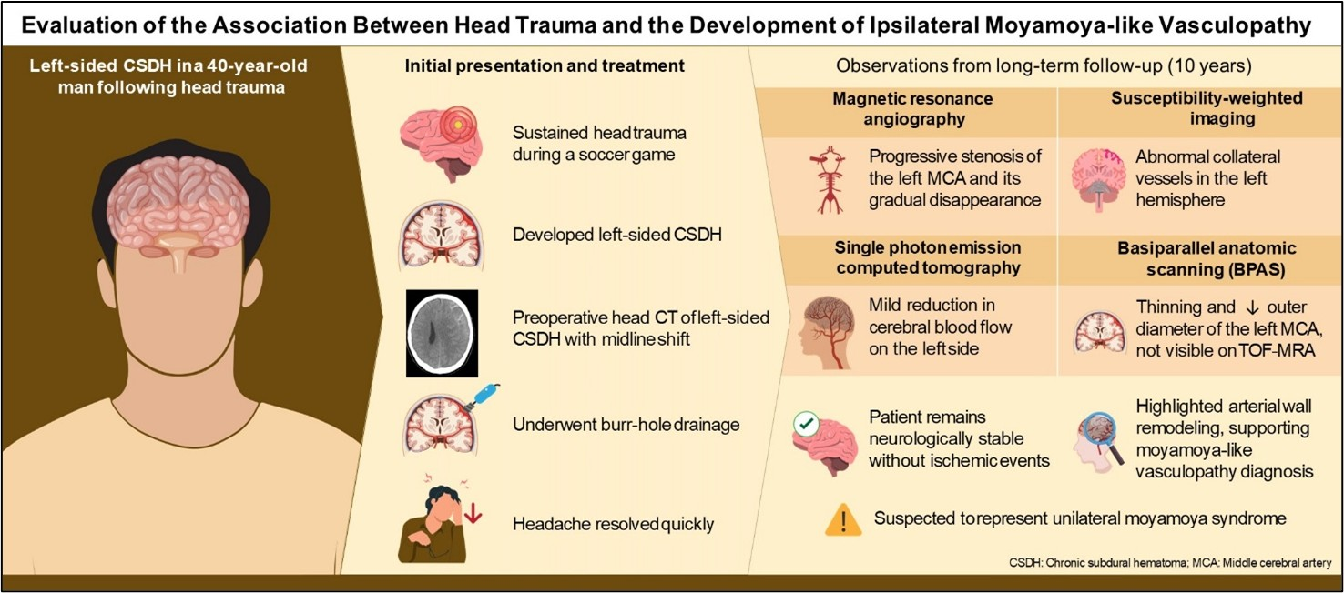 Watanabe S, Shibata Y, Ishikawa E. Progressive Unilateral Moyamoya-like Vasculopathy After Head Trauma with Chronic Subdural Hematoma: A Case Demonstrating the Utility of Anterior Circulation Basi-Parallel Anatomical Scanning. Neurology International. 2025; 17(12):191. https://doi.org/10.3390/neurolint17120191