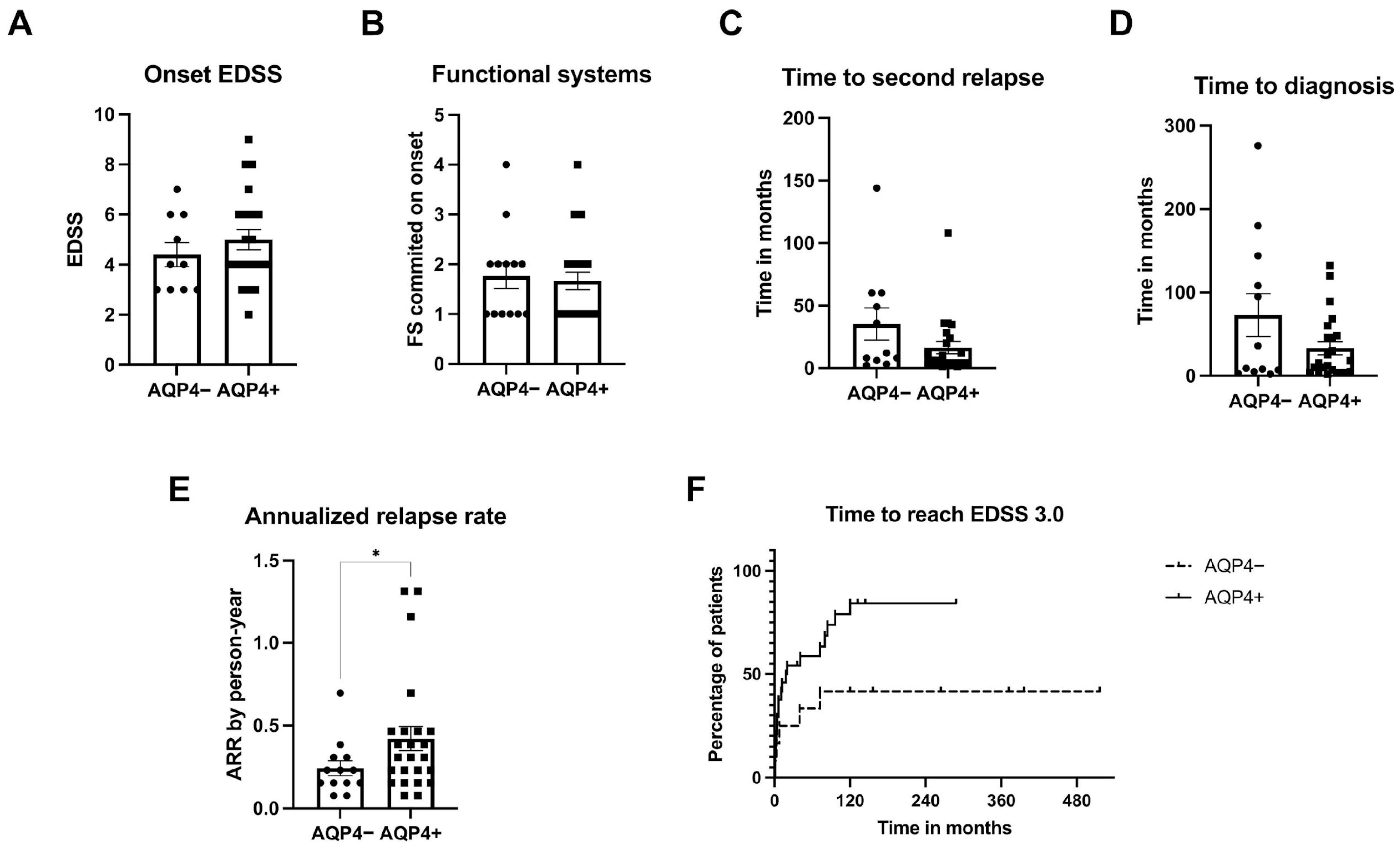 - Chu, F.; Shi, M.; Liu, C.; Zhu, J. Discrepancy in clinical and laboratory profiles of NMOSD patients between AQP4 antibody positive and negative: Can NMOSD be diagnosed without AQP4 antibody? Clin. Exp. Immunol. 2023, 213, 363–370. [Google Scholar] [CrossRef]