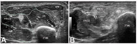 - Grechenig, W.; Peicha, G.; Weiglein, A.; Tesch, P.; Lawrence, K.; Mayr, J.; Preidler, K.W. Sonographic evaluation of the thenar compartment musculature. J. Ultrasound Med. 2000, 19, 733–741. [Google Scholar] [CrossRef][Green Version]