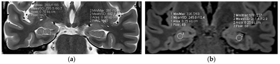 - Coan, A.C.; Kubota, B.; Bergo, F.P.G.; Campos, B.M.; Cende, F. 3T MRI Quantification of Hippocampal Volume and Signal in Mesial Temporal Lobe Epilepsy Improves Detection of Hippocampal Sclerosis. AJNR 2014, 35, 77–88. [Google Scholar] [CrossRef]
