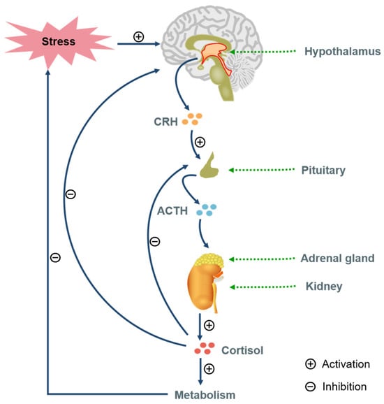 The regulation of stress response by the hypothalamic–pituitary–adrenal axis (adapted from Reference [35]).
