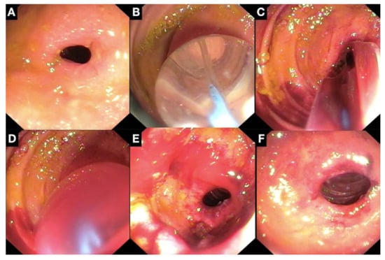 - Das, R.; Singh, R.; Din, S.; Lund, J.; Krishnamoorthy, R.; Hearing, S.; Norton, B.; Williams, J.; Fraser, C.; Goddard, A.; et al. Therapeutic resolution of focal, predominantly anastomotic Crohn’s disease strictures using removable stents: Outcomes from a single-center case series in the United Kingdom. Gastrointest. Endosc. 2020, 92, 344–352. [Google Scholar] [CrossRef]