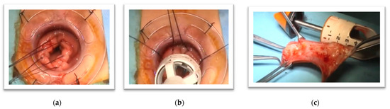 This procedure is performed with the patient in the lithotomy position under regional or general anesthesia. A Lonestar retractor is placed for adequate exposure of the anal verge. A circumferential incision is made in the rectal mucosa 1 cm proximal to the dentate line. The dissection is carried out between the mucosal and muscular layers of the rectum, and a 10–15 cm sleeve of the mucosa is mobilized. Then, the muscle layer of the rectum is longitudinally plicated in four quadrants with 2/0 absorbable sutures. The excess mucosa is excised, and an interrupted mucosal anastomosis is done with 3/0 absorbable sutures [60] (Figure 2).