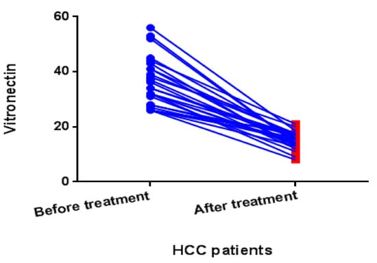 Serum levels of Vitronectin in HCC patients’ group before and after treatment.